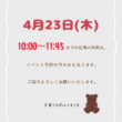 9月から再開しているイベントがあります!ぜひ、チェックしてみてください☆ ご予約は、お電話でも