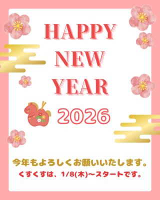 あけましておめでとうございます。子育てスポットくすくすです!2026年もどうぞよろしくお願いいたします。1月は、8日(木)から開所いたします。みなさまにお会いできるのを楽しみにしています^^今年も楽しい1年になりますように☆☆☆☆☆☆☆