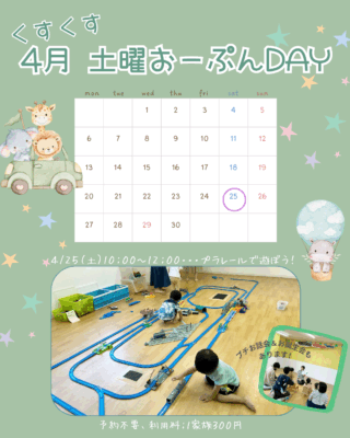 こんにちは、子育てスポットくすくすです🐻「土曜おーぷんDAY」のお知らせです。